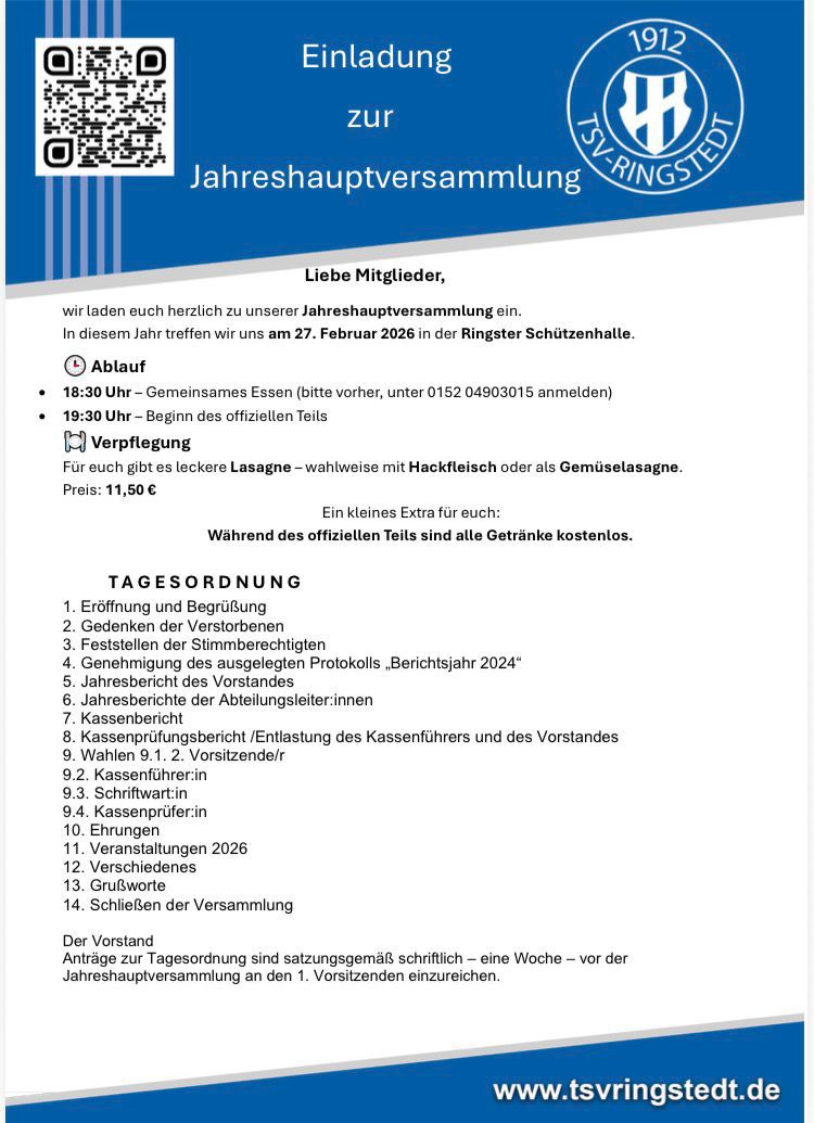 ✨ Werde Teil unseres Teams! ✨Der TSV Ringstedt sucht Unterstützung…